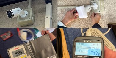屋外防犯カメラ設置のご依頼をいただきました。今回はお客様からご用意いただいたPoE有線LANカメラとモニター(レ…